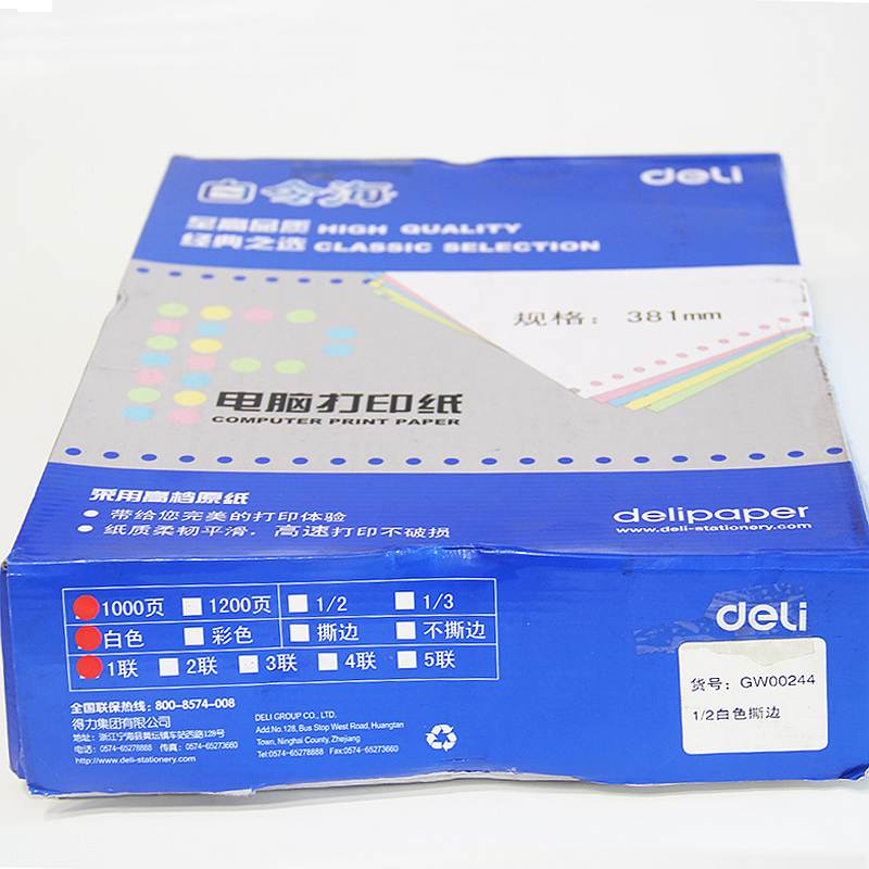 • 得力GW00244白令海电脑打印纸一联撕边(箱)