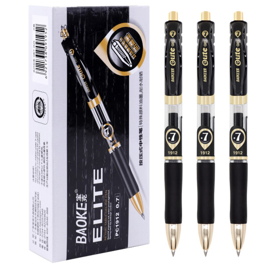 • 宝克(BAOKE)PC1912 0.7mm按动中性笔水笔签字笔 黑色 12支/盒