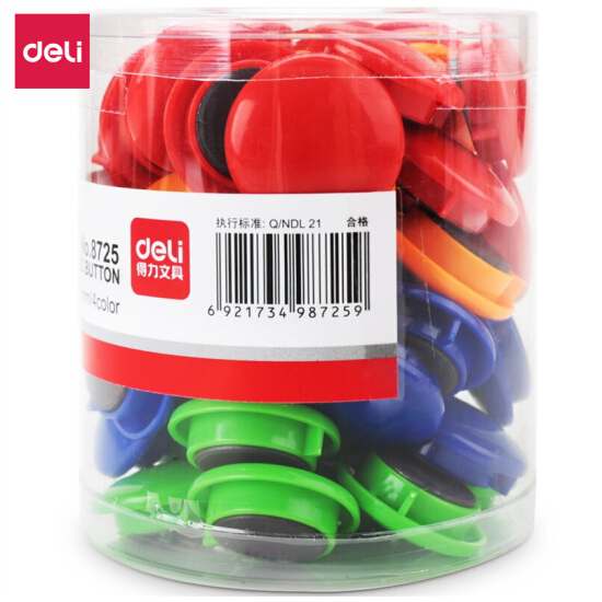 • 得力(deli)彩色白板磁钉磁铁黑板吸铁石/磁铁φ30mm 48粒/筒白板配件 配合白板笔白板擦使用8725