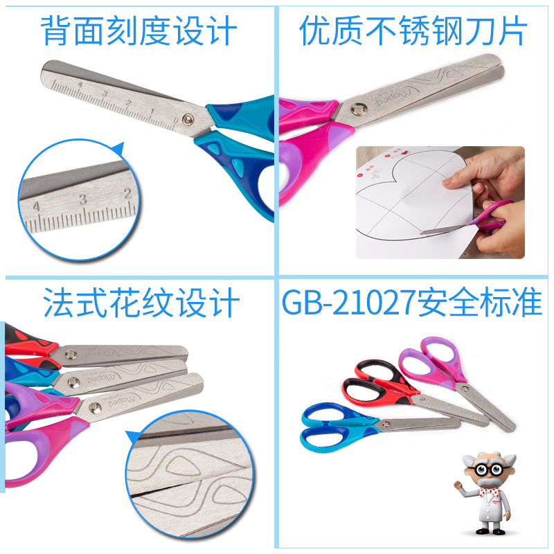 • 马培德剪刀简致软柄剪刀不锈钢学生美术手工裁剪用品安全圆头剪刀