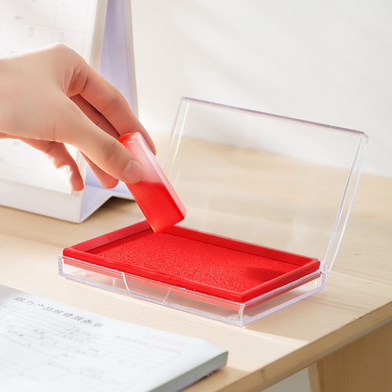 • 得力(deli)137*88mm透明外壳方形快干印台印泥 办公用品 红色9864