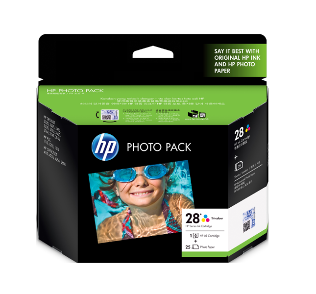 惠普HP 28号彩色墨盒 + 25张高级相纸(4*6英寸带裁边)(OS)